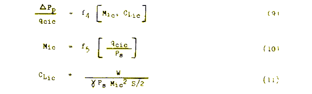 versus indicated lift coefficient(CLic) for the low speed region and in the form of pressure coefficient versus indicated Mach number (Mic) for the high speed region These curves are constructed for both the ship and test systems From these pressure coefficient curves, airspeed, altitude and Mach number correction curves are constructed in a convenient form for each air vehicle configuration as described in Section.