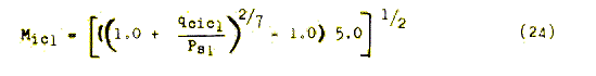 Calibrated Mach number is calculated from Equation (24) substituting qc for qcic and Pa for Ps.