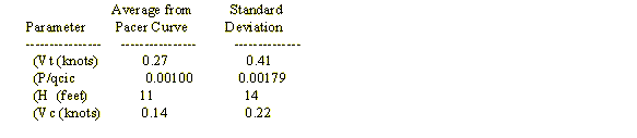 The pacer corrections are known to a high degree of accuracy. These corrections are in the form of a curve of the parameter (P/qcic versus indicated Mach number. These are corrections that are applied to pacer data any time the pacer is used to calibrate another aircraft. The following is the average and standard deviation difference between these three multiple track data points and the pacer curve.